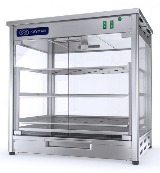 Тепловая витрина для кур Kayman ВТ- 01- СТ А предназначена для непродолжительного хранения и демонстрации в горячем состоянии приготовленных тушек или частей кур, вторых блюд и горячих закусок.