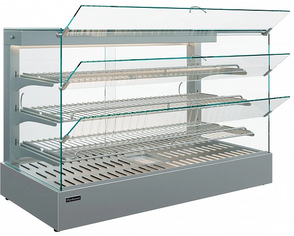 Отличная обзорность витрины, создающая «вкусную экспозицию» выставляемого продукта, обеспечивается благодаря стеклянному колпаку.