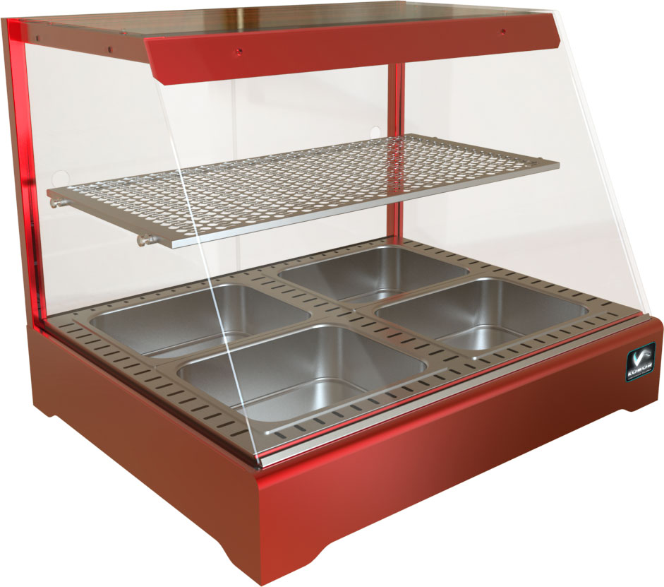 Тепловая витрина Кобор СR1-80H Red серии Standart предназначена для сохранения готовых продуктов питания в подогретом состоянии и демонстрации их покупателям.