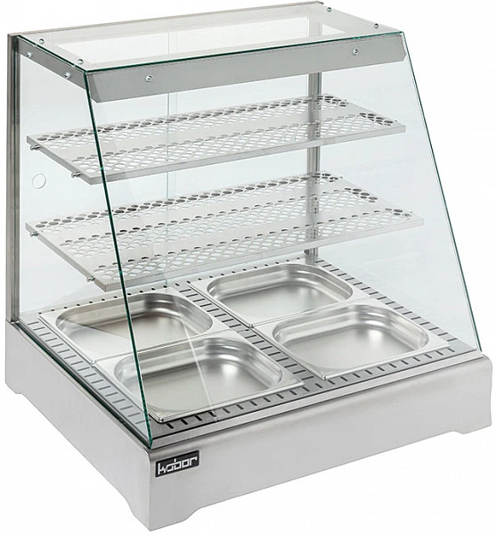 Тепловая витрина Кобор СR2-80H Silver серии Standart предназначена для сохранения готовых продуктов питания в подогретом состоянии и демонстрации их покупателям.
