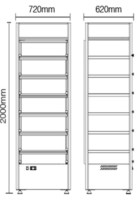 Тепловая витрина напольная Kocateq RTR 650L предназначена для демонстрации, подогрева и кратковременного хранения пиццы, булочек, пирогов и различных закусок на предприятиях общественного питания и торговли.