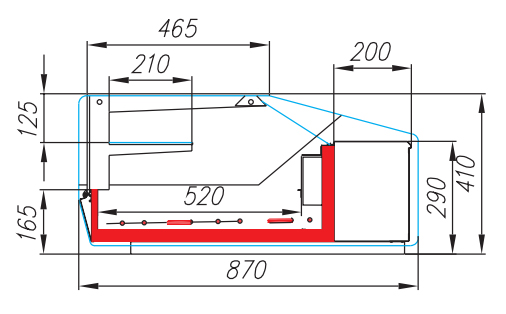 Витрина предназначена для эксплуатации в закрытом помещении с естественной вентиляцией при температуре окружающего воздуха от + 12°С до + 25°С и относительной влажности не более 60%