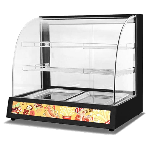 Тепловая витрина Roal HW-2P черная с регулятором температуры серии DH предназначена для демонстрации продукции и поддержания ее в разогретом состоянии, поэтому используется в отелях, на ярмарках, супермаркетах и других местах с большим количеством посетителей.