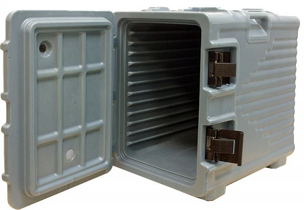 - благодаря использованию уникальной технологии изготовления корпуса контейнера, представляющего собой цельнолитую двухслойную конструкцию из пищевого полиэтилена толщиной 3 мм с инжекцией пенополиуретана высокой плотности, продукты / напитки сохраняют свою первоначальную температуру на протяжении 5 часов;