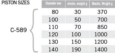 Диаметр пистона 80-100-110-120-130-140-150 мм.