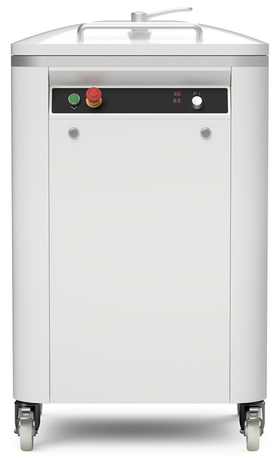 Машина с гидравлическим приводом, с цилиндром двойного действия для прессования и разрезания. Панель управления с возможностью регулировки времени прессования и разрезания. Кнопка очистки ножей. Возможность сохранить до 9 различных программ.