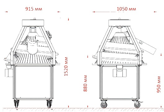 Данная модель оснащена системой регулирования желобов, что обеспечивает различную геометрию выходного продукта.