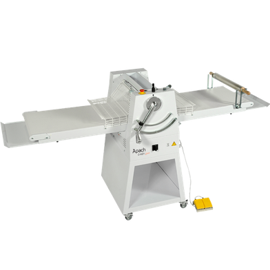 Тестораскаточная машина Apach Bakery Line ASH500/700B конвейерная предназначена для раскатки теста двумя валками с регулируемым зазором для получения пласта теста необходимой толщины. Используется в пекарнях, кондитерских, на предприятиях общественного питания и торговли, а также на предприятиях пищевой промышленности для раскатки различных видов теста: слоеного, дрожжевого и бездрожжевого, кондитерских мастик.