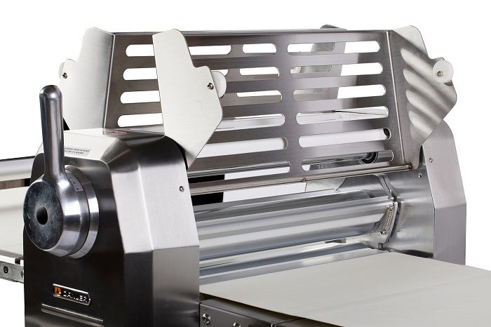 Простота регулирования толщины раскатываемого теста: поворотом рычага, без необходимости его дополнительной фиксации оператор выбирает толщину раскатываемого слоя. Ручка рычага направлена вверх