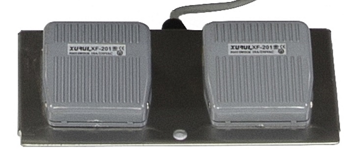 Опционально, возможна дополнительная комплектация педалями управления реверсивным движением конвейерной ленты машины. Педали позволяют работать с оборудованием быстрее (за счет освобождения рук от лишних манипуляций) и постоянно находиться оператору сбоку от центральной панели управления в непосредственной рабочей зоне.