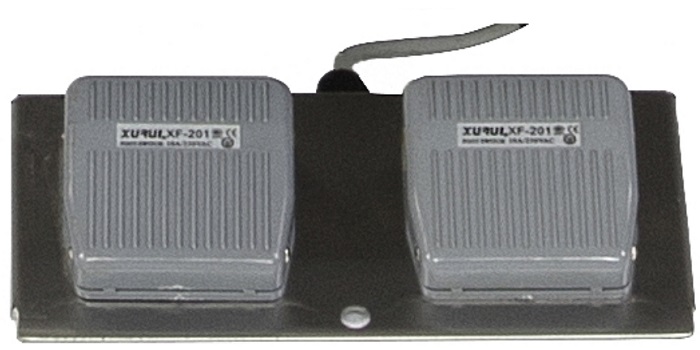 Опционально, возможна дополнительная комплектация педалями управления реверсивным движением конвейерной ленты машины. Педали позволяют работать с оборудованием быстрее (за счет освобождения рук от лишних манипуляций) и постоянно находиться оператору сбоку от центральной панели управления в непосредственной рабочей зоне.