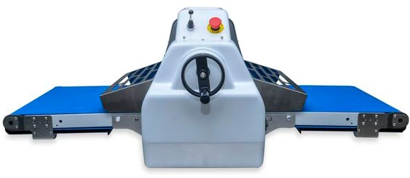 Тестораскатка настольная с механизированными ленточными транспортерами.