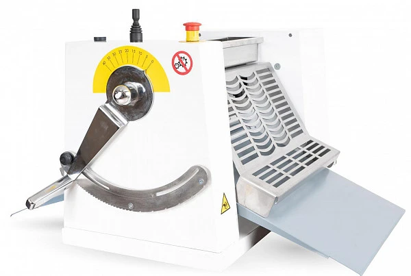 Воздействует на тесто с помощью валиков и превращает массу в ровный пласт нужной толщины. В результате получается идеально раскатанный пласт теста, готовый к дальнейшей обработке.