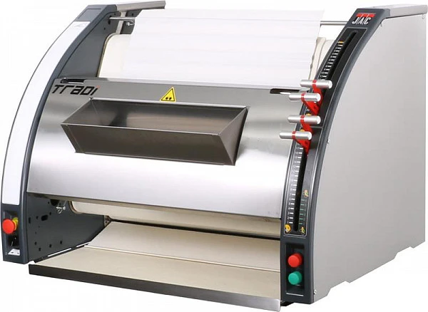 Тестозакаточная машина JAC Tradi используется на предприятиях общественного питания и торговли, в пекарнях и кондитерских для формования заготовок для батонообразных изделий и багетов. Оснащена вариатором скорости для еще более бережного обращения с тестом со значительным содержанием воды (Tradition).