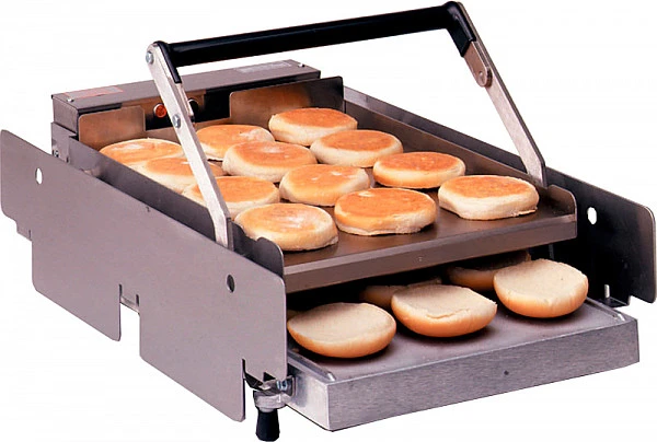 Тостер прижимной для булочек Justa GF-212 используется на предприятиях общественного питания и торговли для обжаривания булочек (карамелизация), используемых для бургеров и горячих бутербродов. На срезе образуется румяная корочка, благодаря которой в булочку не впитывается мясной сок и соус, булка остается мягкой и воздушной.
