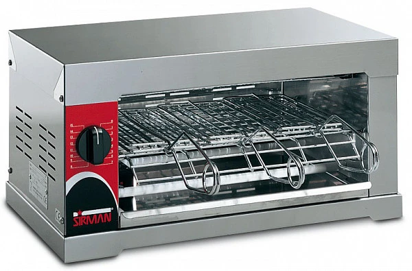 Тостер профессиональный Sirman 6Q идеально подходит для подогрева пиццы, бутербродов и полуфабрикатов, а также для приготовления гамбургеров, сосисок, тостов с начинкой и пресных лепешек "пьядина".