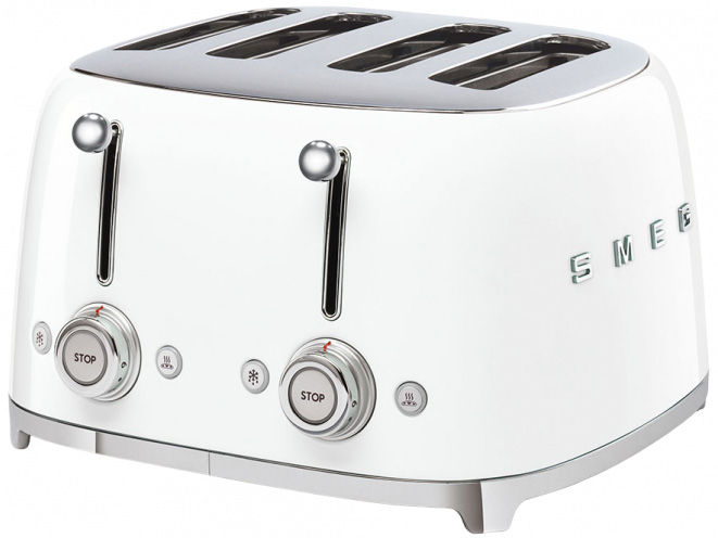 Тостер Smeg TSF03WHEU предназначен для обжаривания ломтиков тостового хлеба. С помощью дополнительно приобретаемых держателей тостер также можно применять для подогрева булочек или сэндвичей. Прибор отличается уникальным дизайном благодаря исполнению в стиле 50-х годов.