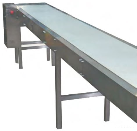 Использование бесконечной ПВХ ленты позволяет уменьшить до минимума звук работы транспортёра и обеспечивает простоту промывки изделия.