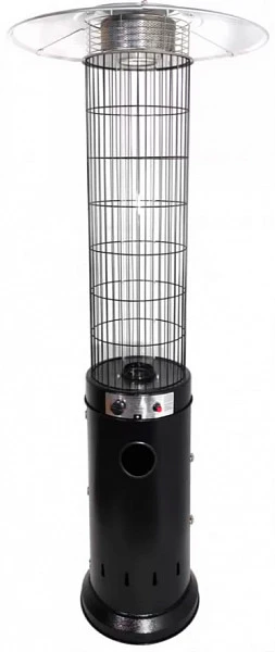Уличный газовый обогреватель для террасы WWT 13D pro Black mini выполнен в форме колбы, оканчивающейся алюминиевым отражателем. Нижняя его половина закрытая, а верхняя представляет из себя прозрачную трубку из огнеупорного стекла, внутри которой горит пламя. Такой дизайн выглядит привлекательно сам по себе, а в сумерках он еще и создает особую, романтическую атмосферу.