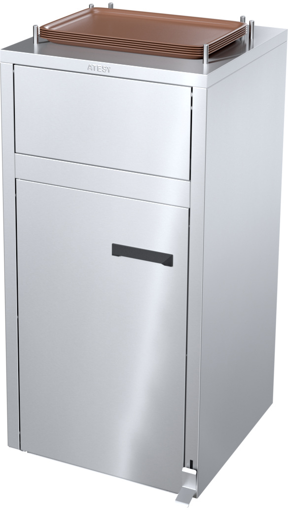 Станция сбора отходов Atesy ССО-120-П-01 предназначена для сбора одноразовой посуды и упаковки от фаст-фуда, а так же временного хранения использованных подносов в точках общественного питания и ресторанах самообслуживания.