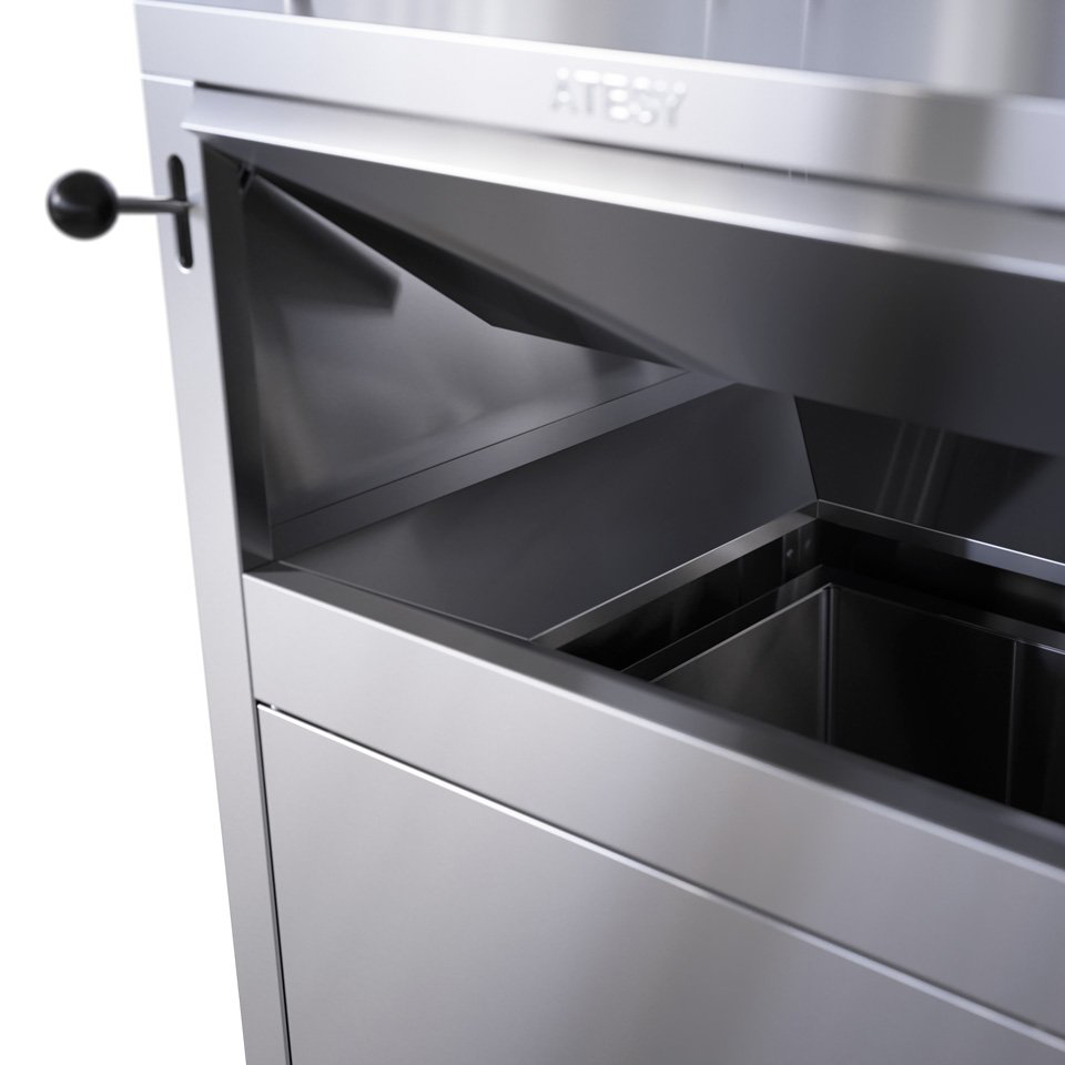 • Тумба станции и емкость для мусора изготавливаются из шлифованной легированной стали.