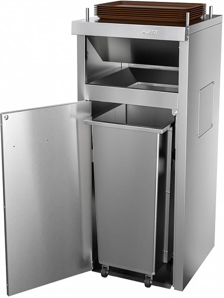 Урна для фудкорта Atesy ССО-240-С-01 предназначена для сбора одноразовой посуды, упаковки от фаст-фуда и прочего мусора, а также для временного хранения использованных подносов в точках общественного питания и ресторанах самообслуживания.