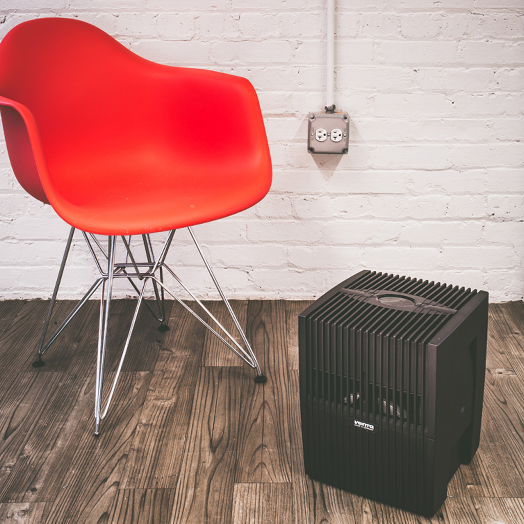 Уход предельно прост: доливайте воду по мере испарения и раз в 2-3 дня споласкивайте поддон и пластинчатый барабан проточной водой. Полностью разборный корпус прибора можно помыть в посудомоечной машине или сполоснуть под душем, а моторный блок с вентилятором протереть сухой тканью.