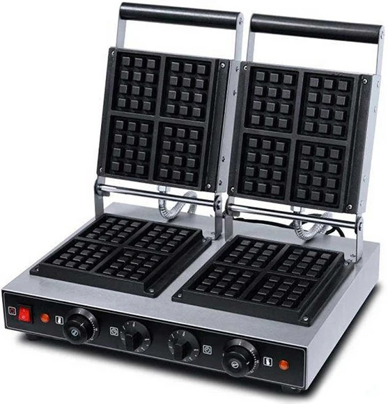 Вафельница Hualian Machinery HWB-2S используется на предприятиях общественного питания и торговли для выпечки бельгийских вафель.