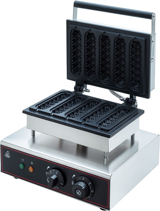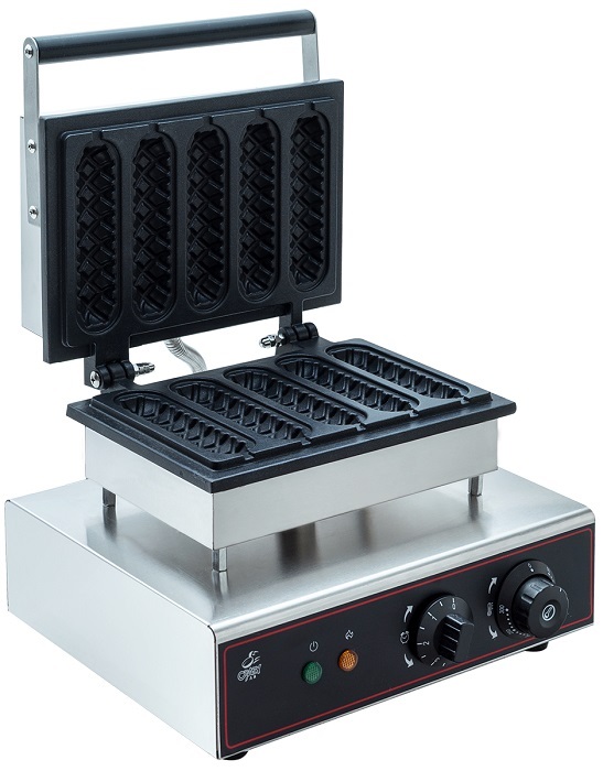 Вафельница корн-дог Crazy Pan CP-CD05 используется на предприятиях общественного питания и торговли для приготовления хрустящих сосисок в тесте.