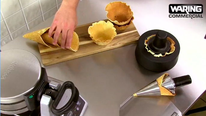 Вафельница Waring WWCM180E используется на предприятиях общественного питания и торговли для выпекания вафельных рожков.