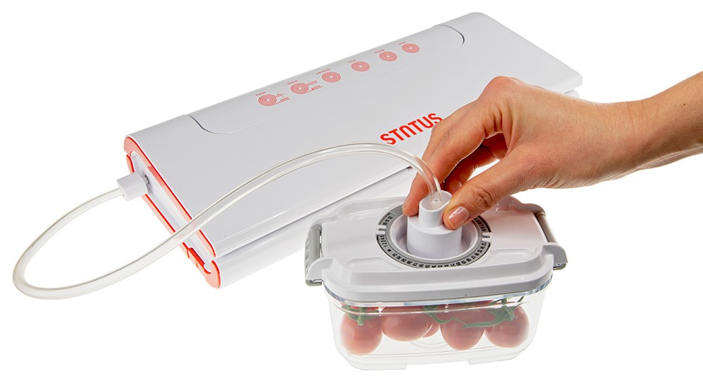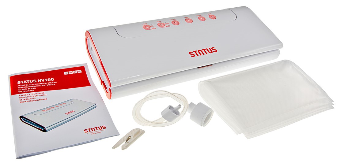 Status HV 100 для современных домохозяйств, которым нужен удобный вакуумный упаковщик, который можно хранить на кухонном столе. HV100 имеет регулируемые функции вакуумирования и герметизации для хранения всех видов пищевых продуктов.
