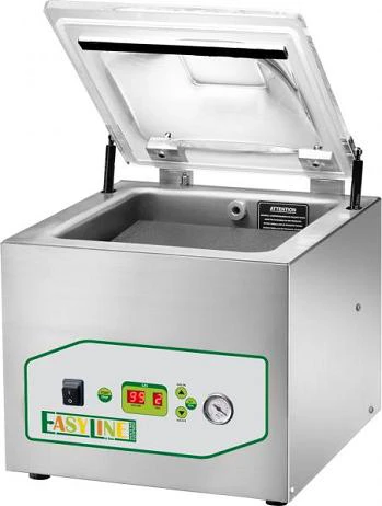Данный упаковщик подходит для заведений с большой и средней проходимостью. Вакуумный упаковщик работает либо с пакетами, либо с пленкой, из которой формирует пакеты. Такая упаковка обретает форму продукта, полностью облегая его со всех сторон. Упаковщик сделан из нержавеющей стали. Панель управления прибором цифровая, есть автоматические и ручные режимы.