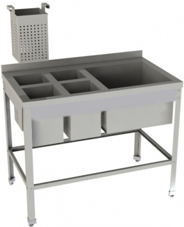 2 мойки из нержавеющей стали Aisi 430: ВМСЯ-1/5-Б-ЭЦ - 4 емкости по 200х200х300 мм; ВМС-1/5-Б-ЭЦ - 1 емкость 450х450х300 мм.