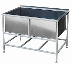 Емкость изготовлена из нержавеющей стали и установлена в каркас с регулируемыми опорами.