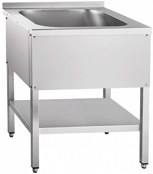Ванна моечная односекционная Abat ВМП-6-1-5РН (с полкой, вся нерж.) предназначена для мойки посуды на предприятии общественного питания.