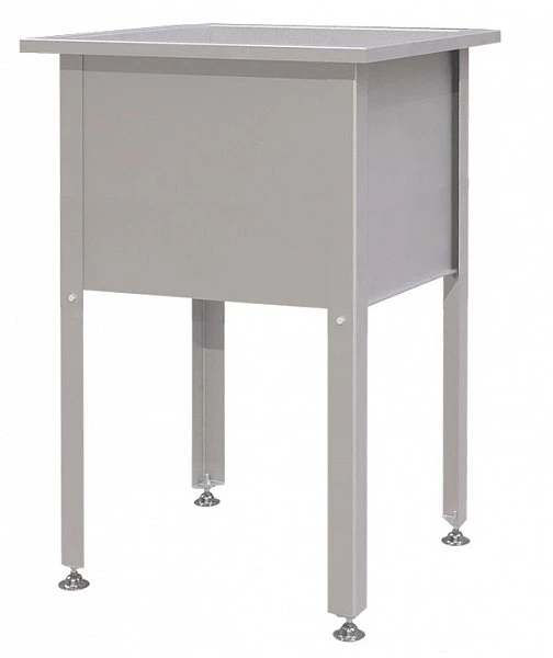 Стойки каркаса представляют собой уголок с фальцованными краями для увеличения жесткости конструкции. Опорные ножки регулируются по высоте и изготовлены из нержавеющей стали c пластиковой подложкой внизу для предотвращения повреждения напольного покрытия. В комплект поставки ванны не входит система разрыва струи.