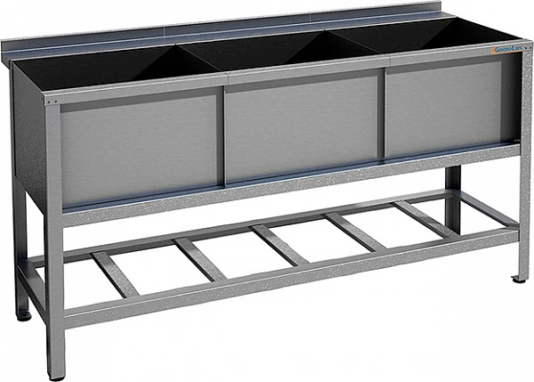 Ванна моечная Gastrolux ВМ 3-1753Н/Е Econom 2-гнездовая предназначена для мойки посуды на предприятии общественного питания.