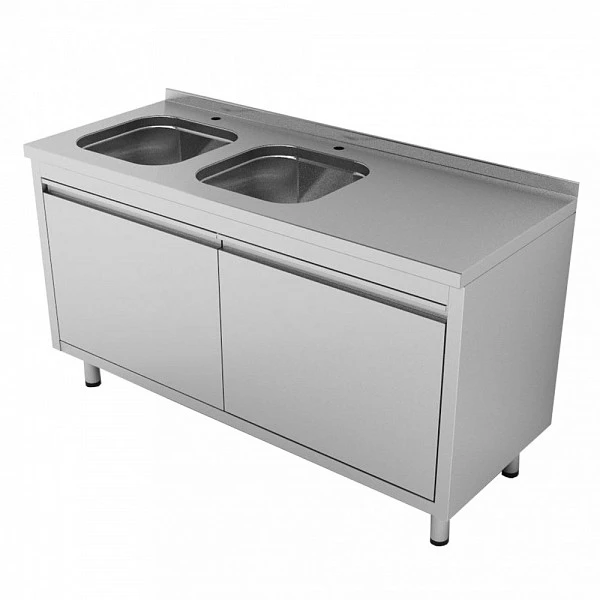 Ванна моечная Gastrolux ВМ2-186/54ЛР/P Premium 2-гнездовая c распашными дверцами (мойка слева) предназначена для мойки посуды на предприятии общественного питания.
