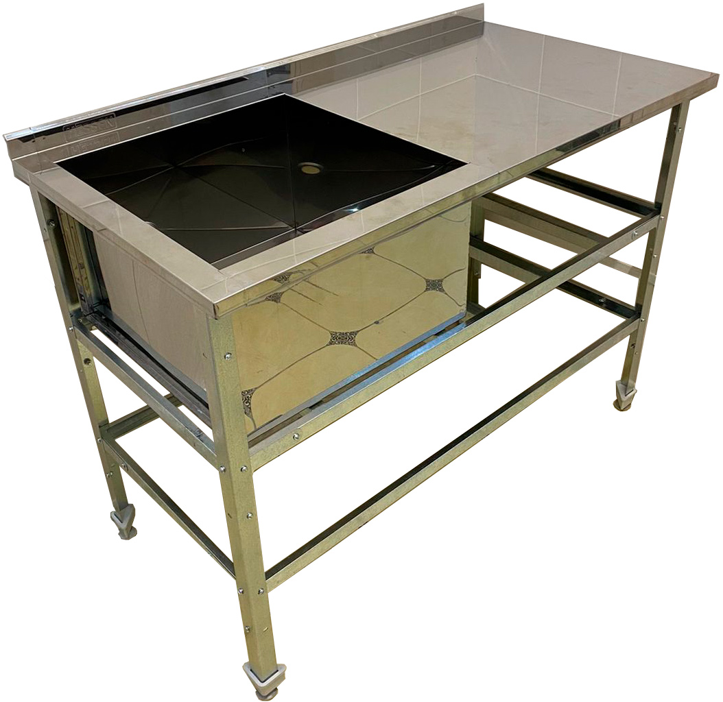 Моечная емкость изготовлена из пищевой нержавеющей стали.