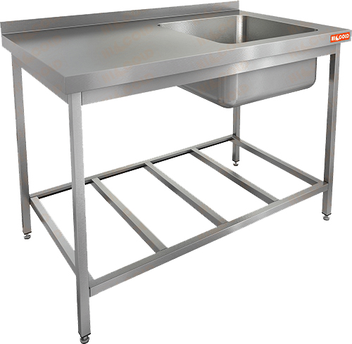 Ванна моечная односекционная (мойка справа) HICOLD используется на предприятиях пищевой промышленности, общественного питания и торговли для мойки продуктов питания, посуды и кухонных принадлежностей.