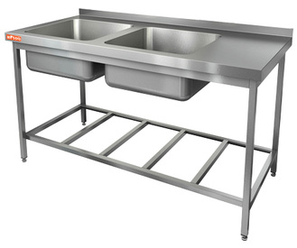 Ванна моечная 2-х секционная (мойка слева) HICOLD используется на предприятиях пищевой промышленности, общественного питания и торговли для мойки продуктов питания, посуды и кухонных принадлежностей.