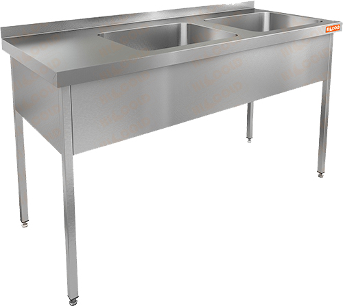 Ванна моечная двухсекционная (мойка справа) HICOLD используется на предприятиях пищевой промышленности, общественного питания и торговли для мойки продуктов питания, посуды и кухонных принадлежностей.