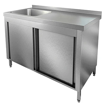 Стол рабочий Hicold НСЗК1М-11/6БЛ может использоваться как для хранения кухонного инвентаря, так и для мойки посуды на предприятии общественного питания, что позволяет эффективно использовать рабочее пространство Вашей кухни.