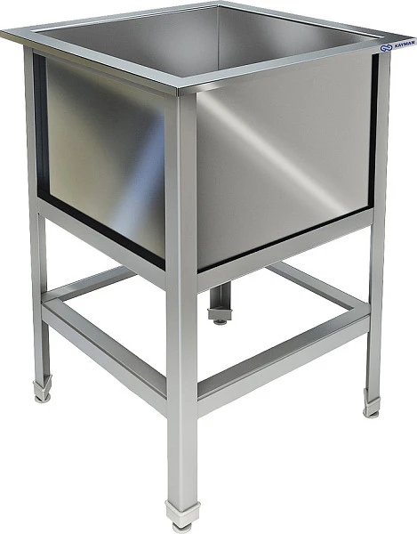 Мойка ванны сварная, выполнена из пищевой нержавеющей стали марки AISI 430 толщиной 0,8 мм и имеет отгибы, которые исключают травмирование персонала.