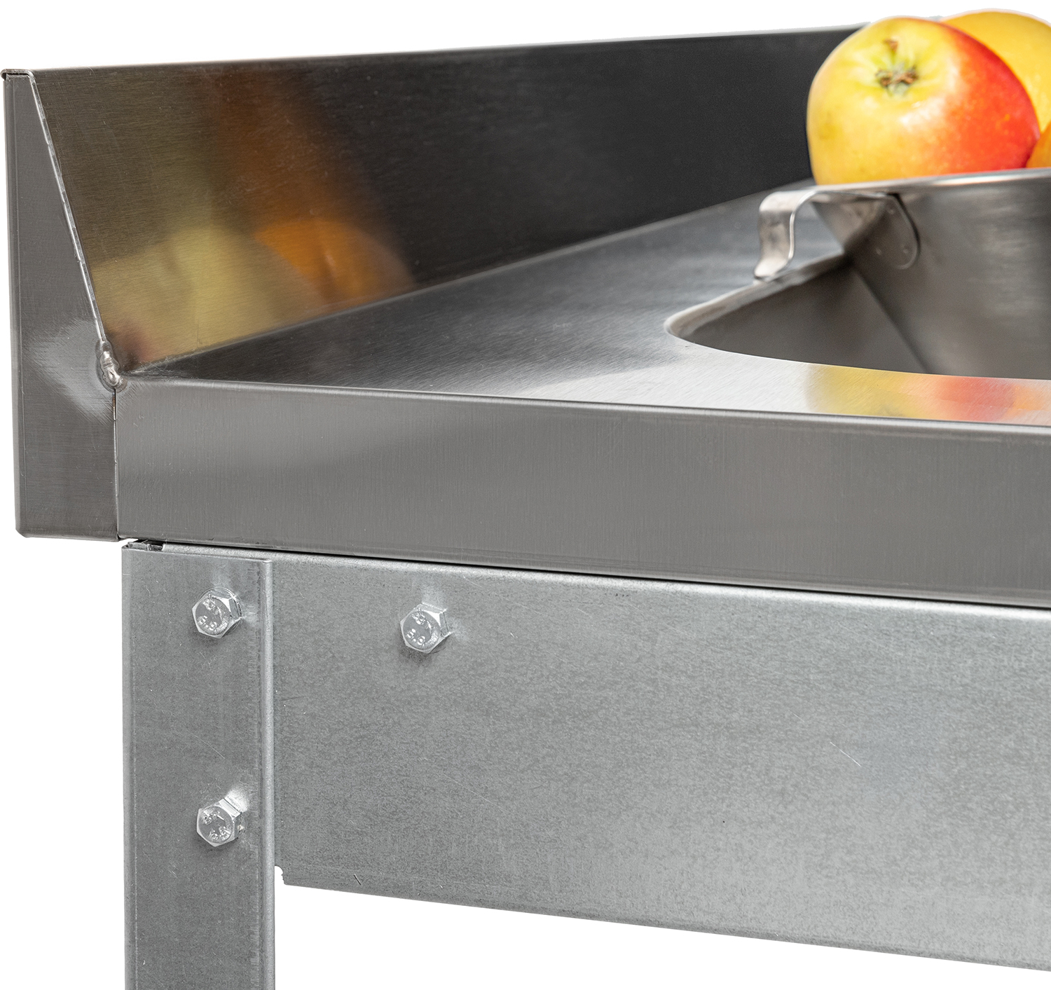 Ванна выполнена из пищевой нержавеющей стали и имеет подогнутую кромку, что предотвращает травмирование рабочего персонала.