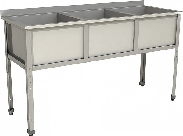 Ванна моечная RESTOINOX ВМС-3/5-Б-ЭН разработана для применения в моечных отделениях предприятий общепита и торговли различного формата, пищевых производств и пищеблоков для мятья посуды, кухонного инвентаря, продуктов питания и рук персонала.