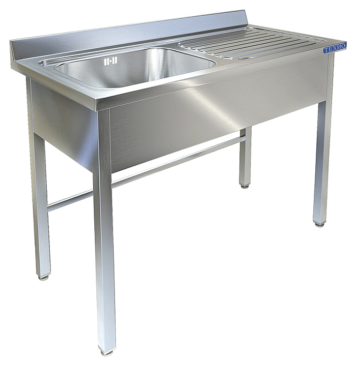 Ванна слева, обнижение 15мм, крыло рифленое с сушкой и наклоном для стекания воды с посуды в ванну.