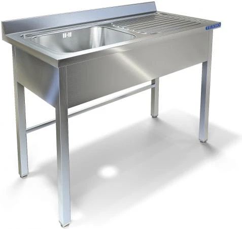 Одна цельнотянутая емкость размером 600х600х330 из нержавеющей стали марки AISI 304 толщиной 1мм, ванна слева, обнижение 2мм, крыло плоское.