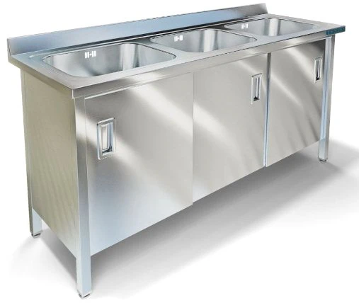 Три цельнотянутые емкости размером 600х500х300 из нержавеющей стали марки AISI 304 толщиной 1мм, обнижение 2 мм.