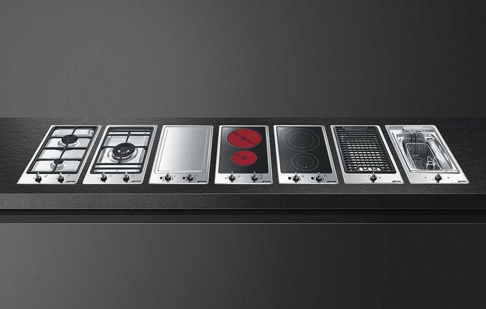 Допустимые места установки четко указаны кругами и нагревание происходит только внутри диаметров, отмеченных на самой поверхности. Излучающие зоны включаются по истечении нескольких секунд, и их нагрев приводится в действие поворотом ручки регулятора энергии. Боковые индикаторы ручек указывают на остаточное тепло: включаются, когда температура превышает 50°C и выключаются, когда опускается ниже этой величины. Эта функция значительно повышает безопасность пользования.